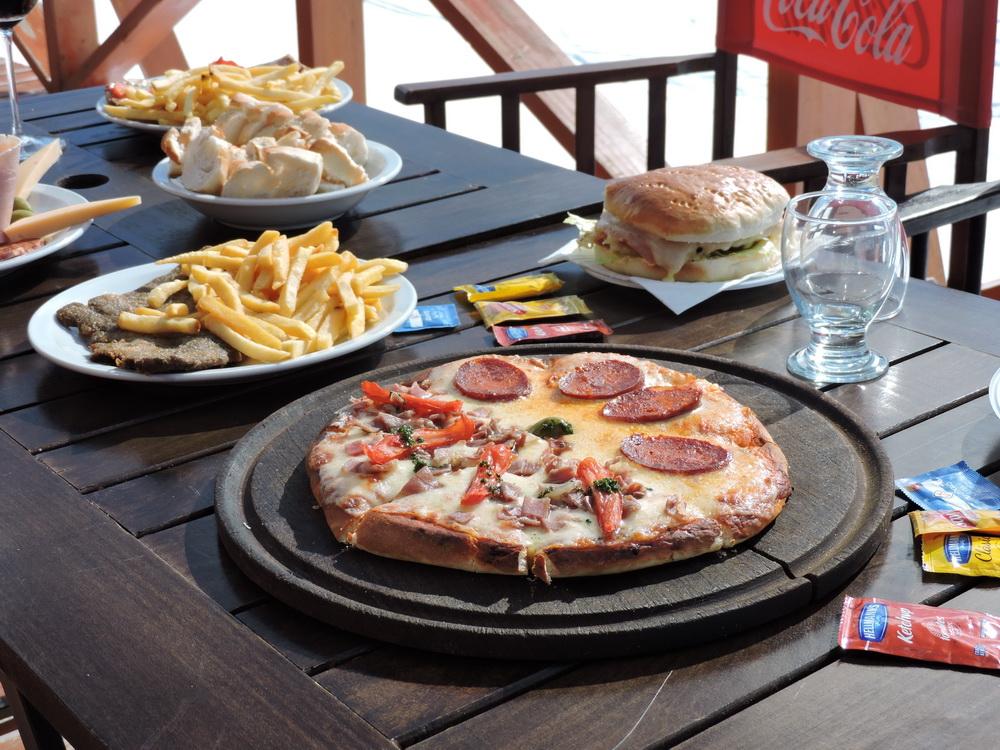En la base del cerro se encuentra la confitería restaurante, donde se ofrecen los tradicionales “platos del día”, minutas, empanadas, pizzas, bebidas y postres.