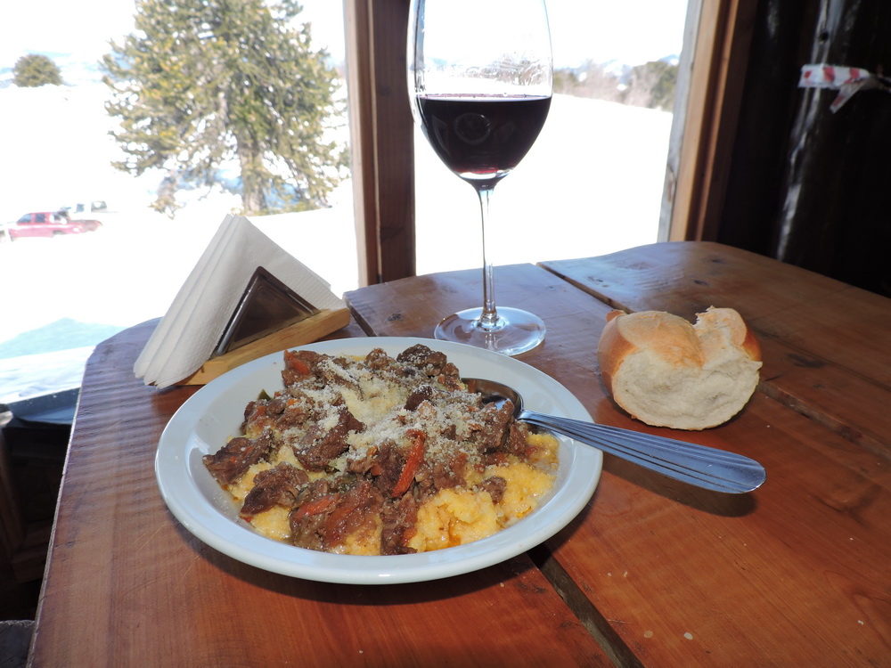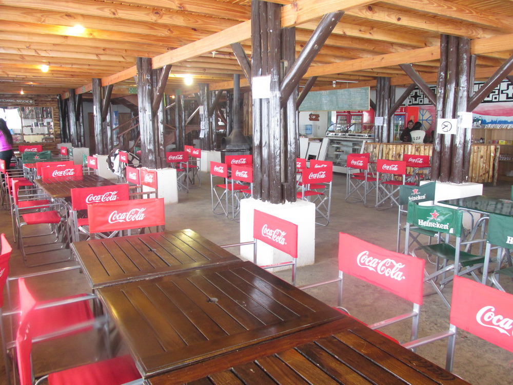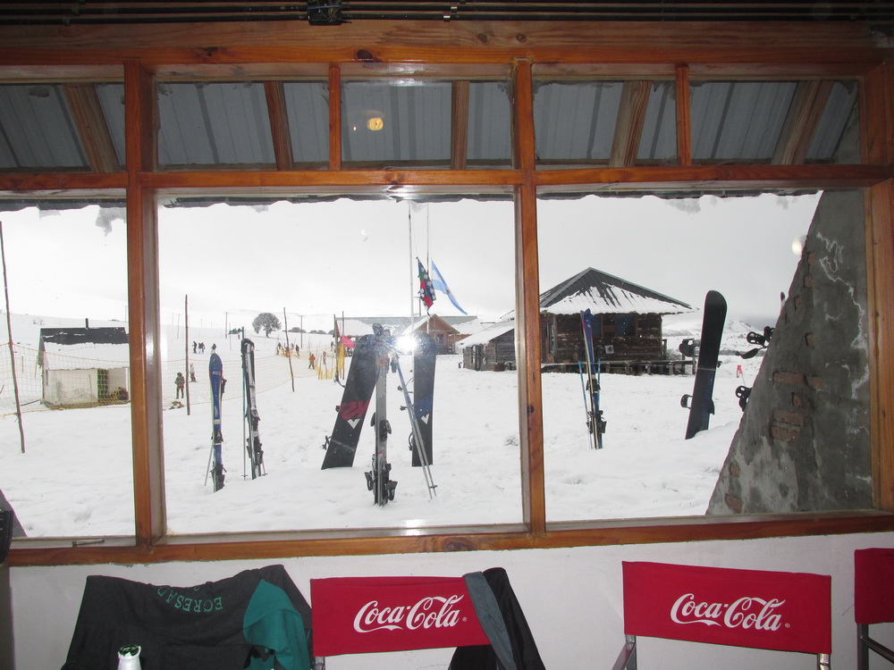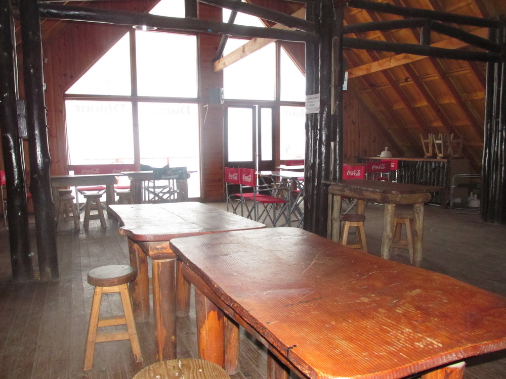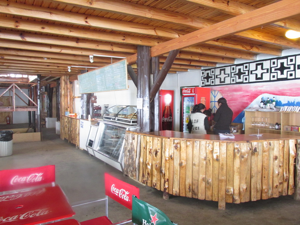 También cuenta con opciones para el desayuno o merienda como café, chocolate caliente y pastelería. Y es un lugar calefaccionado muy amplio y cómodo,desde donde se puede ver las pistas y el volcán Batea Mahuida.